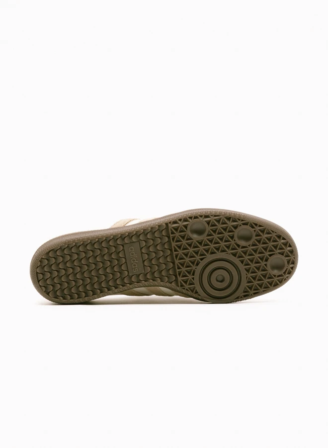 The adidas Samba LT W JH5706 is a contemporary reinterpretation of the iconic Samba. The cream leather upper is accented by Warm Sandstone details and a distinctive oversized tongue, inspired by football heritage. Gold Metallic accents add a touch of luxury, while the classic gum sole ensures grip and durability.