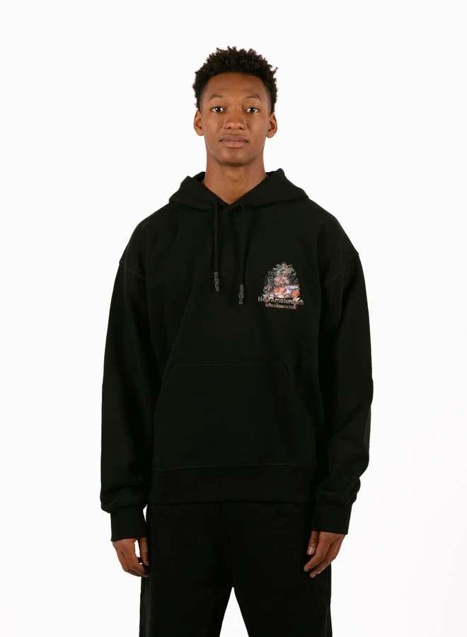 The New Amsterdam Surf Association Buffet Hoodie in Black brings streetwear to the next level. Cut in a relaxed unisex fit and crafted from heavyweight 455GMS cotton, it ensures both comfort and durability.